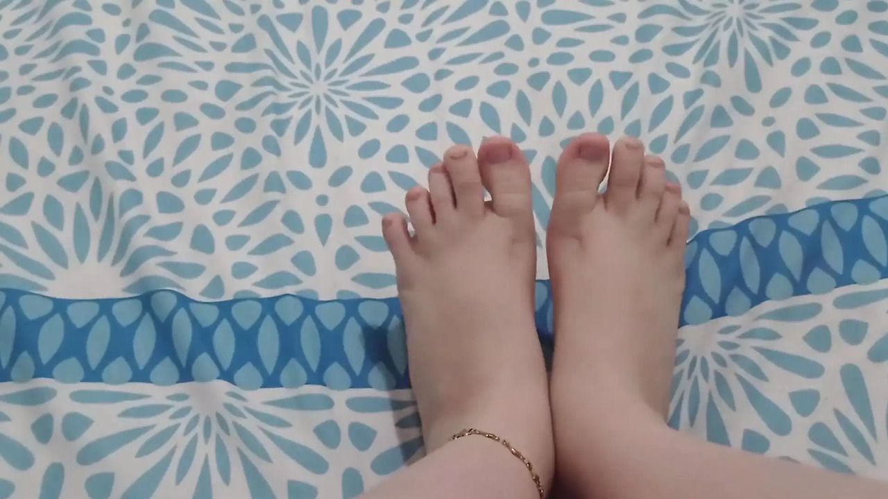 Sexy Latina woman with long, skinny legs lies on her bed. She spreads her thighs and starts rubbing her soles together, moaning as she masturbates. She licks her feet and cums with a loud orgasm, her pretty feet clad in black stilettos.