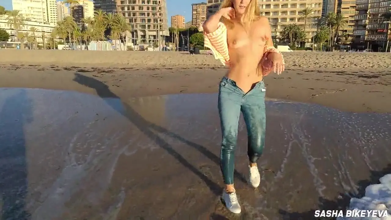 Naughty girl teases her feet and takes risks with public masturbation on the beach. She pisses on herself and others, enjoying the thrill. Amateur foot fetish scene with russian pissing and squirting.