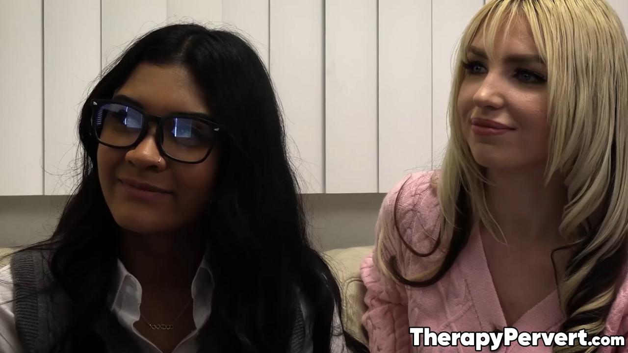 In a twisted turn of events, therapist Dr. Jack Vegas helps feuding girlfriends Britt Blair and Reina Heart work through their issues using his cock. He gives Britt a deep throat blowjob while Reina licks her pussy. The session turns into a threesome with doggystyle action and a messy facial for both girls.