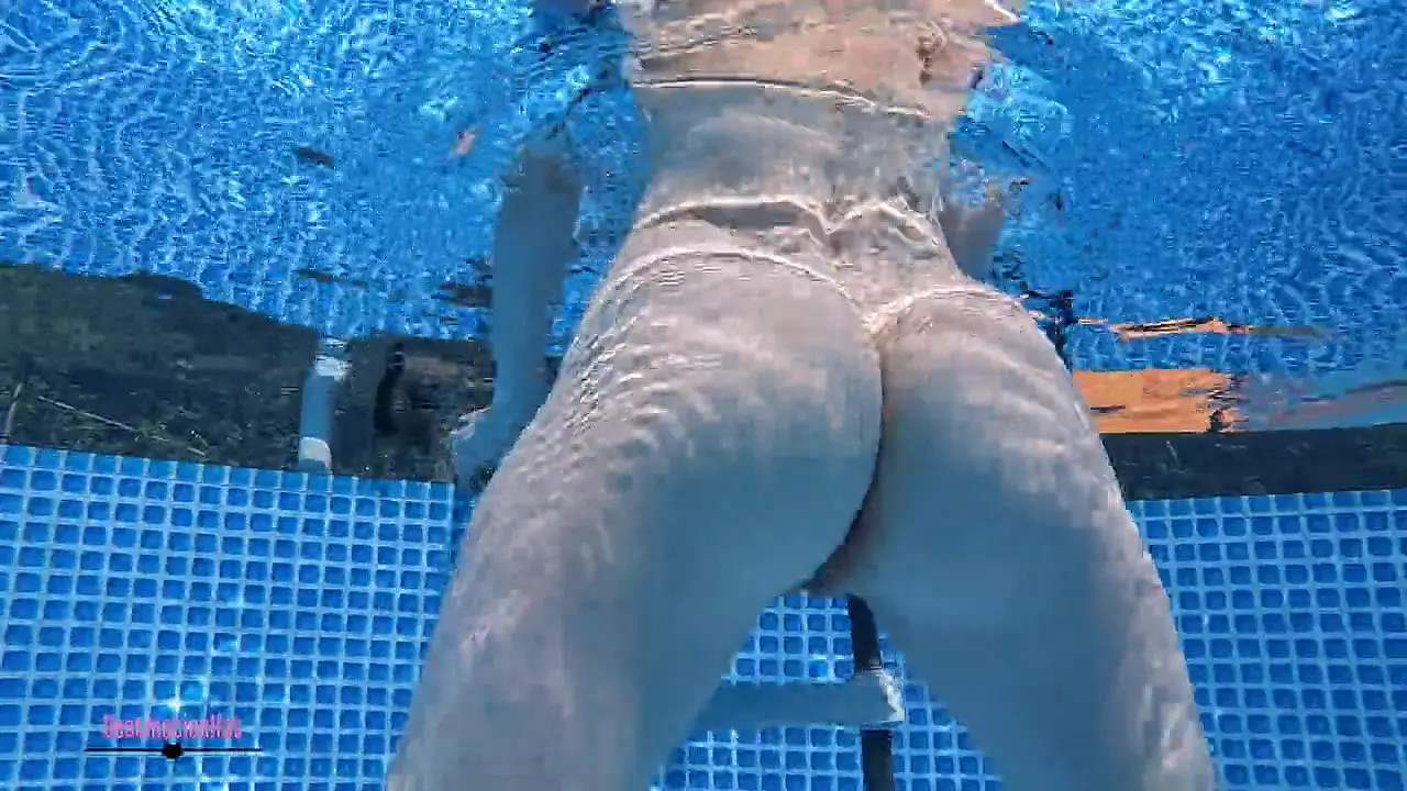 A stunning blonde stripper seduces a guy with a provocative dance in her bikini. She then joins him in the swimming pool, teasingly removing her swimsuit to swim nude. He can't resist her and they end up having hot sex in the water.