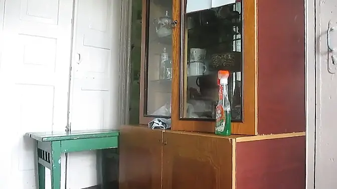 The hostess took up cleaning in some stockings